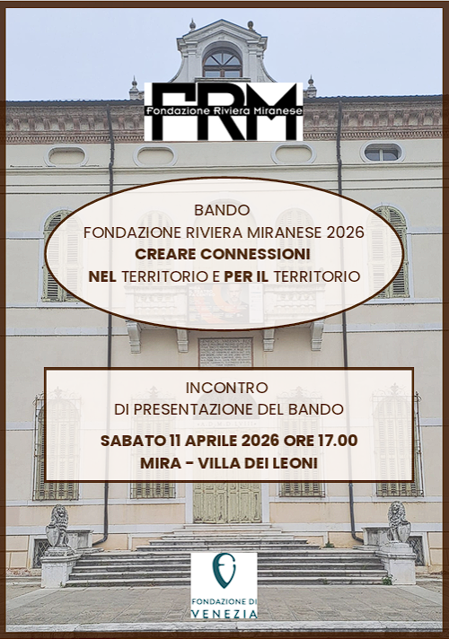 Sabato 11 aprile 2026 alle ore 17:00, presso Villa dei Leoni a Mira, si terrà la presentazione pubblica del Bando n. 1/2026 della Fondazione Riviera Miranese.